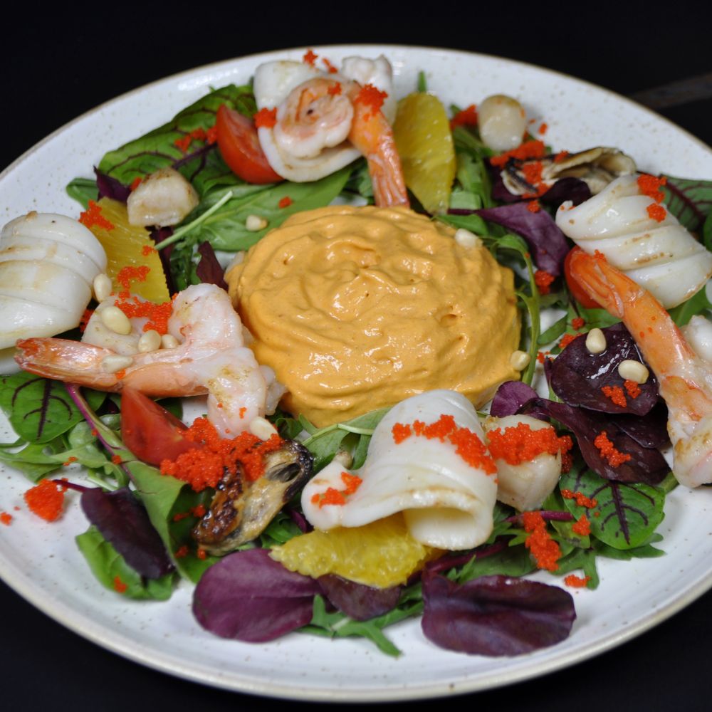 Теплый салат с морепродуктами
