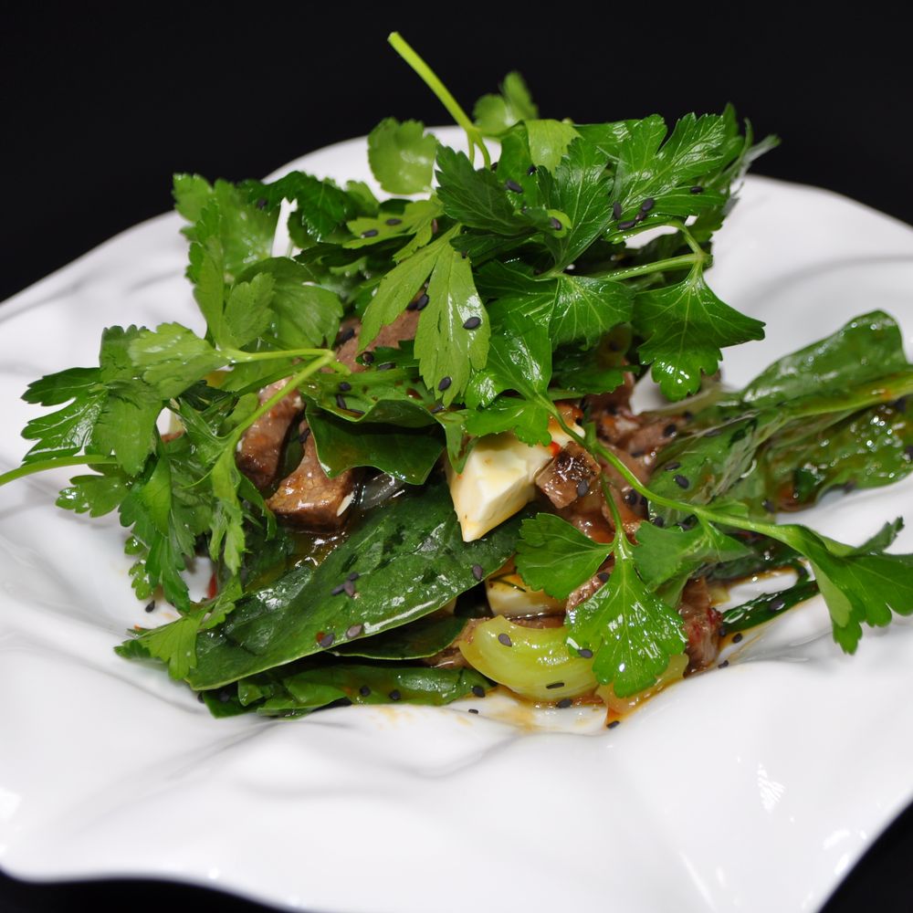 Телятина, сыр Фета, томаты черри, Пак Чой, соус азия